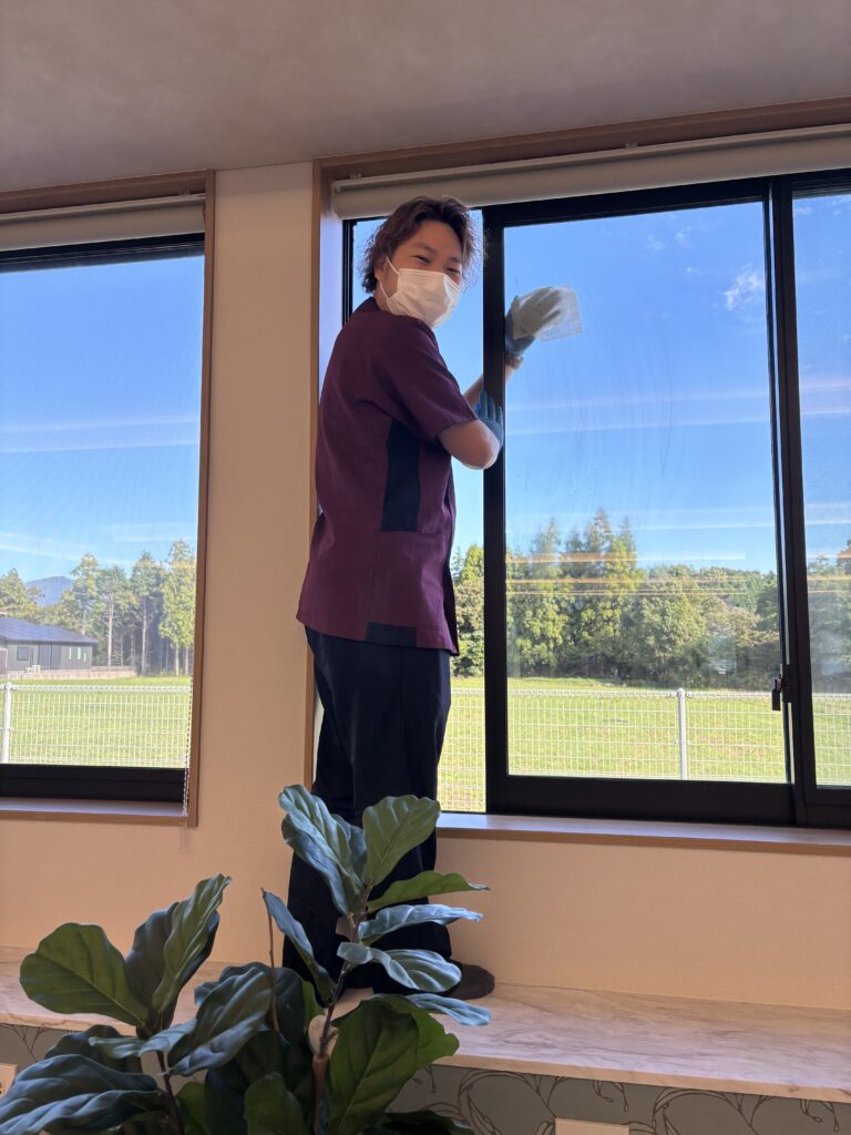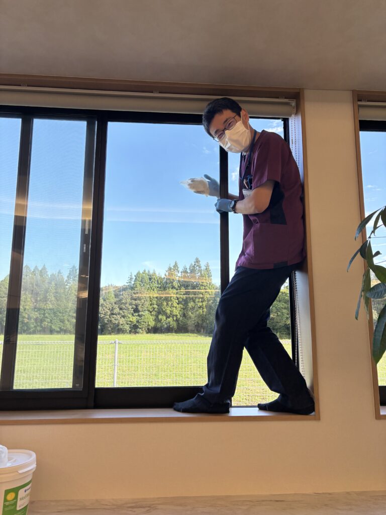 亀山透析クリニックでは、技士さん達が窓ふきをしてくれました🙋🏻♂️