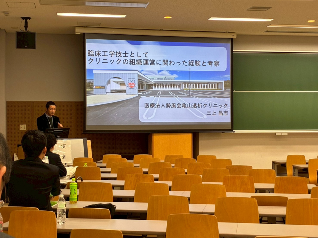 亀山透析クリニックからは、伊與田理事長、三上技士長、毛受さんが発表しました!